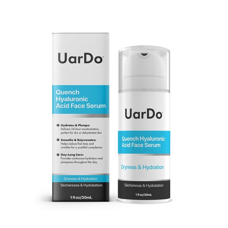 Uardo Quench Hyaluronic Acid Face Serum 1 Fl Oz/ 30 ml - usn106 | For Dry & Dehydrated Skin | Moisturizing | Aids w/Wrinkles & Fine Lines | For Women and Men