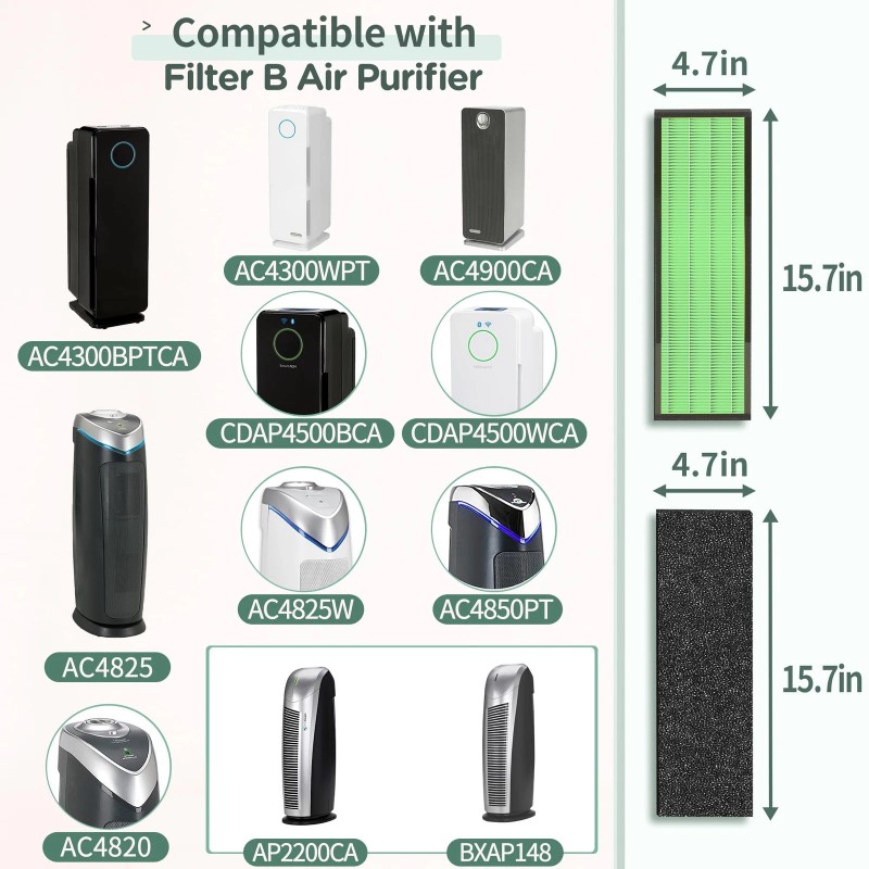 - FIT LIKE A GLOVEUaswpart FLT4825 Filter B Replacement totally compatible with AC4820 AC4825E AC4825W AC4300WPT AC4300BPTCA AC4850PT AC4900CA CDAP4500BAC AP2200CA AP2200 and Black+Decker BXAP148, replace Part# FLT4825 Filter B, perfect performance as the original AC4825E replacement filter.