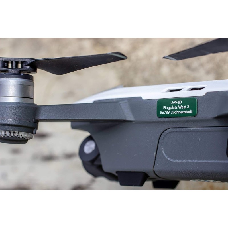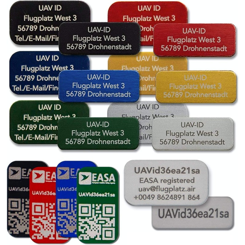 UAV-ID - Drone licence plate - name plate or e-ID, 20 x 8 mm or 20 x 11 mm, 3 or 4 lines, anodised aluminium in various colours, high-quality laser labelling.