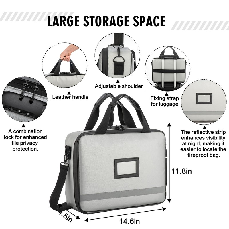 - 【Lightweight and Easy to Carry】: Differing from the bulkiness and rigidity of a document safe, this fireproof document bag is made from non-hardshell fiberglass fire-resistant material, providing ample space and portability. It also comes with a handle, making it easy to carry in emergencies.