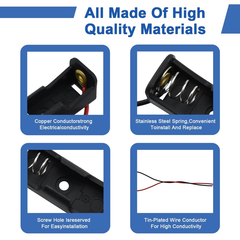 • 🔋𝗠𝗮𝘁𝗲𝗿𝗶𝗮𝗹: A23 battery holder made of high-quality hard plastic. Expertly crafted. Wear-resistant to maintain a continuous and stable connection. Perfect for soldering or connecting, be used as a perfect external power source.