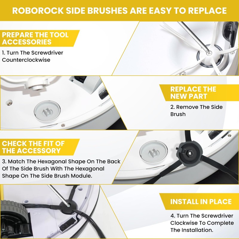 - 𝐄𝐧𝐡𝐚𝐧𝐜𝐞 𝐂𝐥𝐞𝐚𝐧𝐢𝐧𝐠 𝐏𝐞𝐫𝐟𝐨𝐫𝐦𝐚𝐧𝐜𝐞: The side brushes replacement effectively sweeps the edges of the room, directing edge dust towards the main brush and suction system, ensuring thorough cleaning