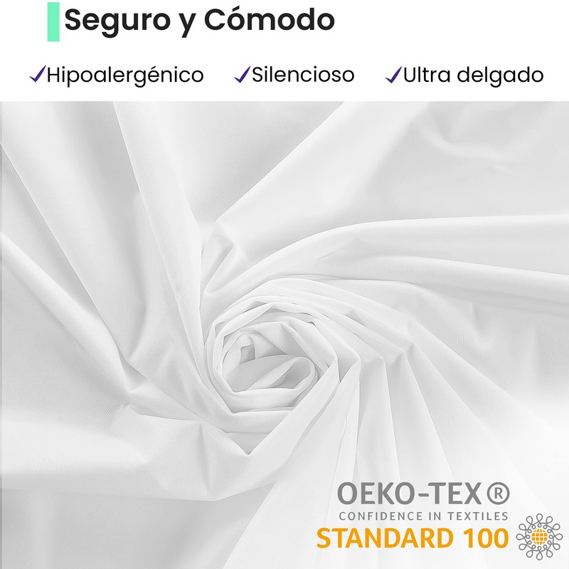 - 100% IMPERMEABLE, ULTRA DELGADO, SUAVE Y SILENCIOSO. Este protector de colchón es 100% impermeable y silencioso. Protegerá tu colchón de todo tipo de líquidos como, transpiración, orina y derrames accidentales. Además es ultra suave y tan silencioso que no lo notarás.