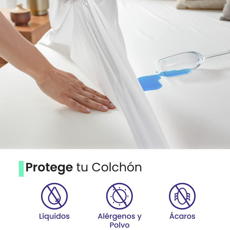 - ANTIÁCAROS, ANTI POLVO Y ANTI ALÉRGENOS. Este protector contra agua para cama, cuenta con respaldo de poliuretano sin ruido, haciendo una cubierta física que mantendrá tu colchón siempre limpio; libre de alérgenos, ácaros, polvo y bacterias. Libérate de las alergias y alarga la vida de tu colchón, manteniéndolo siempre en perfecto estado.
