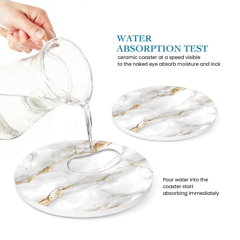 - 【Absorbent Ceramic Drink Coasters】Drink coaster is made of high-quality liquid-absorbing porcelain stone, which will absorb water or drink stains a few seconds and keep table dry and clean.