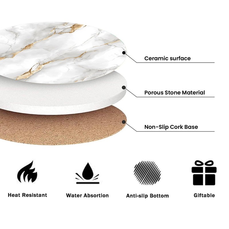 - 【Suitable Size】6pcs round 4 inch diameter ceramic coasters match all cups, making them fit with coffee cups,mugs,tumblers,wine glasses,kids' drinks and sports bottles.