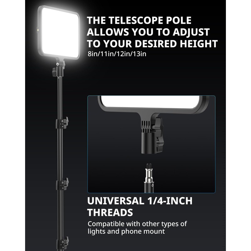 - 【Flexible Light Adjustment】The 3-section adjustable pole design extends up to 65 inches, allowing users to easily adjust the height based on different shooting needs. The lamp head can rotate 180°, ensuring that the light source is directed to the optimal position, further enhancing shooting results.
