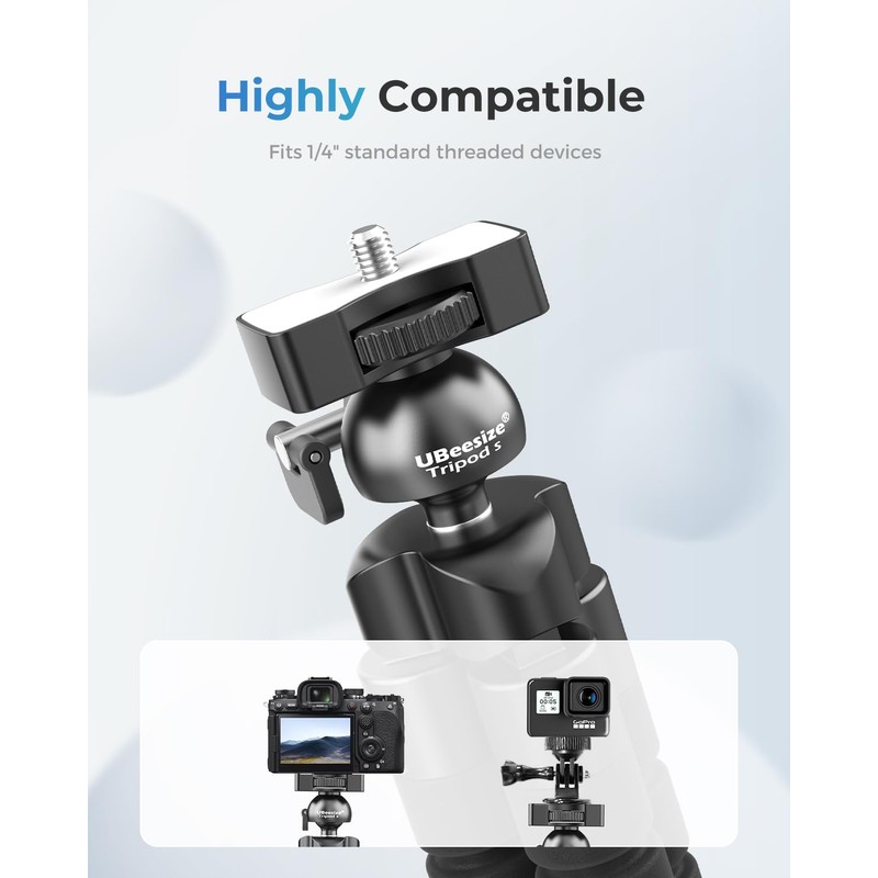 • Increased Stability- A high grade metal ball joint supports phone/camera up to 1kg. Locks the heaviest smartphone into position securely. The non-slip feet design keeps this adjustable tripod steady on virtual ground surface.