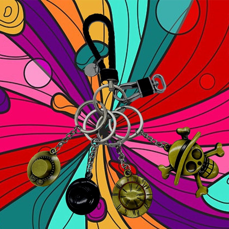Ubephant One Piece Key Ring, One Piece Keychain, One Piece Anime Key Ring, One Piece 6 Piece Straw Hat Anime Keychain, Straw Hat Ruffy and Skull Keyring, copper