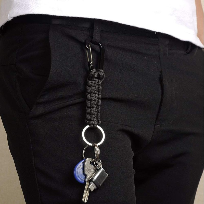 3. The lightweight parachute cord is tear-resistant, weather-resistant and fits in any trouser pocket with a fall-resistant key ring. You can hang things on both ends. The carabiner can be easily hung or attached to backpacks, zippers and belt loops.