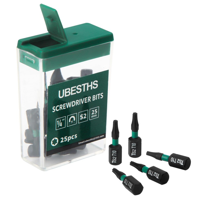 UBESTHS Torx Bit T10, Screwdriver Bits Set 25 Pieces, 1/4 Inch Hex Shank, 25 mm Length with Box