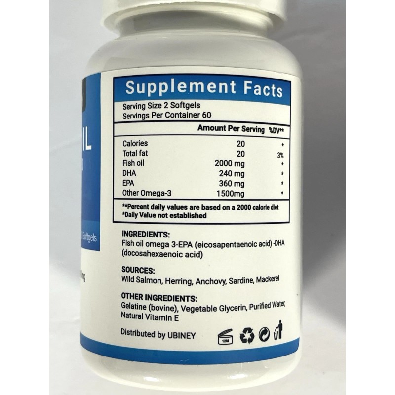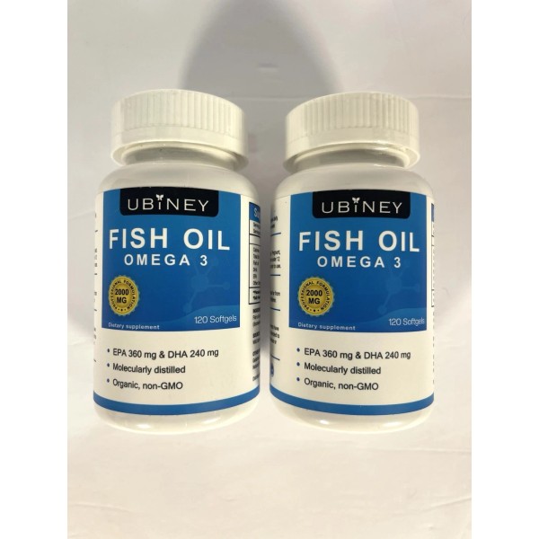 Ubiney Omega 3 Fish Oil 2000mg Softgels 120 Ct High Potency EPA 360mg DHA 240mg