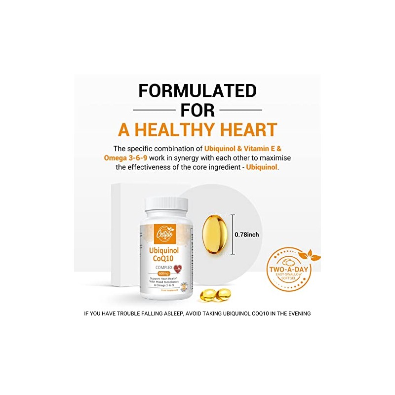 • UNIQUE FORMULA - we combined the Ubiquinol (which has the highest content 600MG per serving) with Vitamin E, Mixed Tocopherols and Omega-3, 6 and 9 from Flaxseed oil. Some of these ingredients can work synergistically with one another and thereby maximize the effectiveness of the core ingredient Ubiquinol! Each ingredient has its own beneficial effects on the body. We gurantee perfectly crafted with the exact amounts of ingredients for optimal nutritional value and maximum benefits.