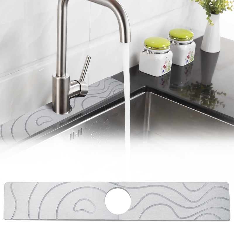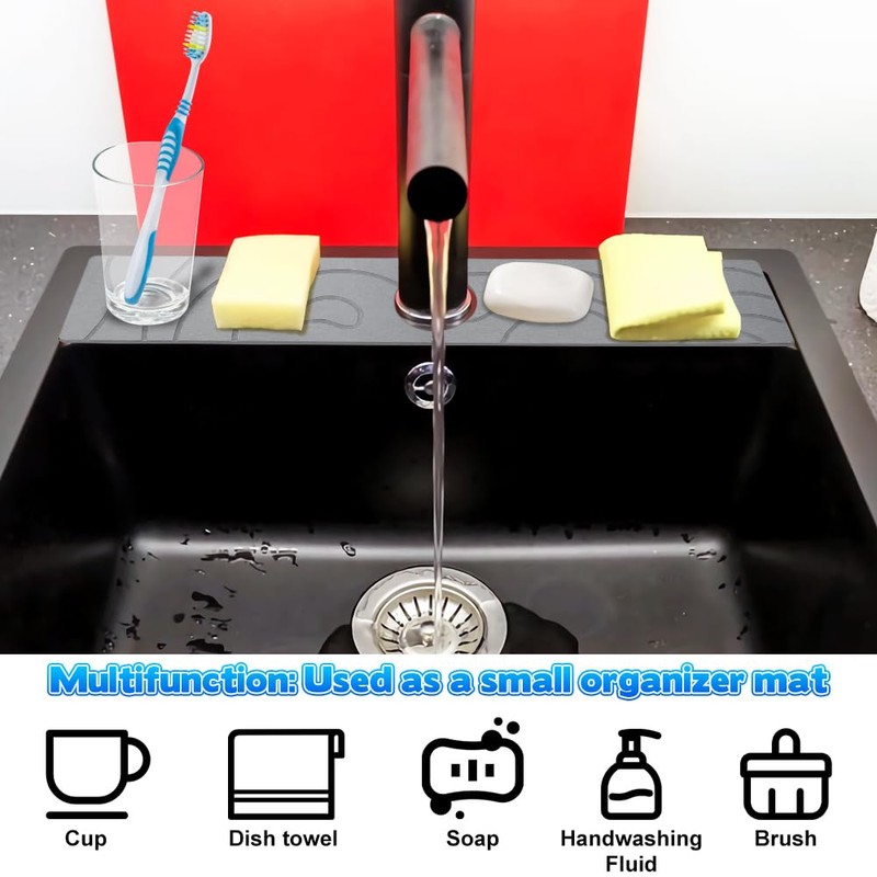 - 【EFFORTLESS CLEANING HOLD】: Say goodbye to the tedious task of cleaning cloths or silicone faucet absorption mats over time and time again that emit unpleasant odors over time. Our faucet water collection mat is made of natural diatomaceous earth making it easy to clean and maintain. Simply rinse it with warm water and enjoy a fresh and clean kitchen sink every time.