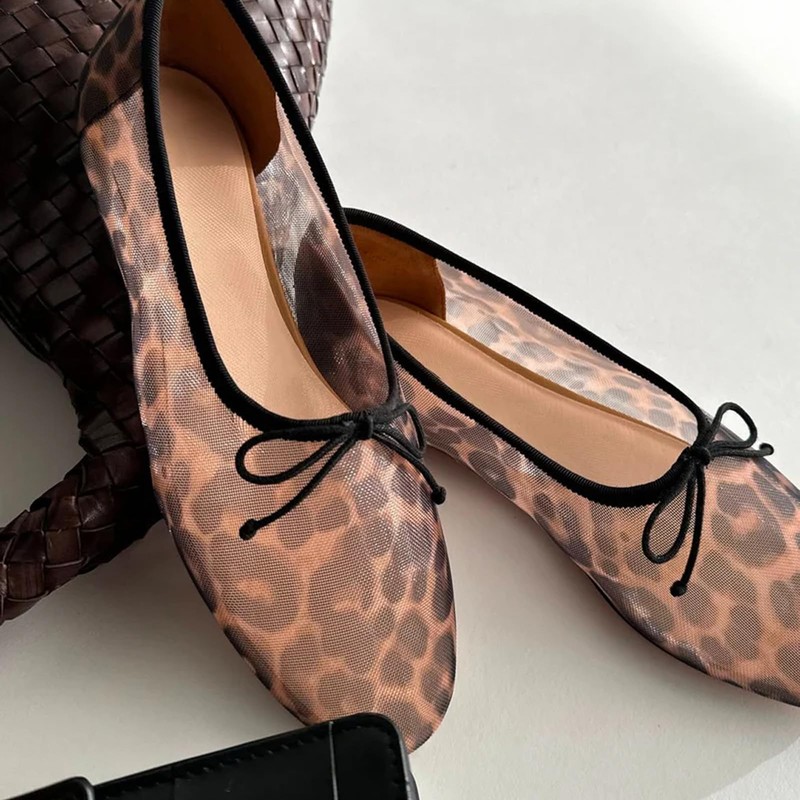 - Stylish Leopard Print Mesh Upper: Elevate your fashion game with our Mesh Ballet Flats featuring a chic leopard print mesh upper. This stylish design effortlessly adds a fashionable flair to any outfit