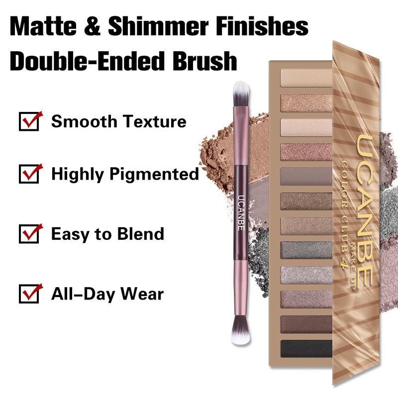 UCANBE 12 Color Eyeshadow Makeup Palette, Naked Nude Eye Shadow, Neutral Matte Shimmer Make Up Pallet with Double-ended Brush Set Kit, Highly Pigmented Long Lasting Waterproof (04)