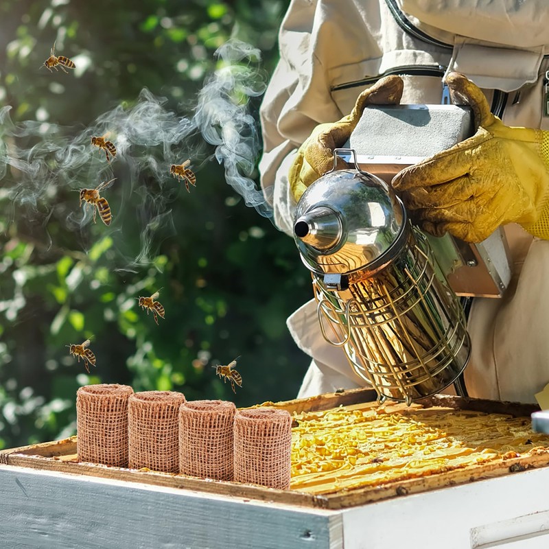 - Produces smoke that relaxes the bees Made from natural materials, making it safe for bees and the environment.