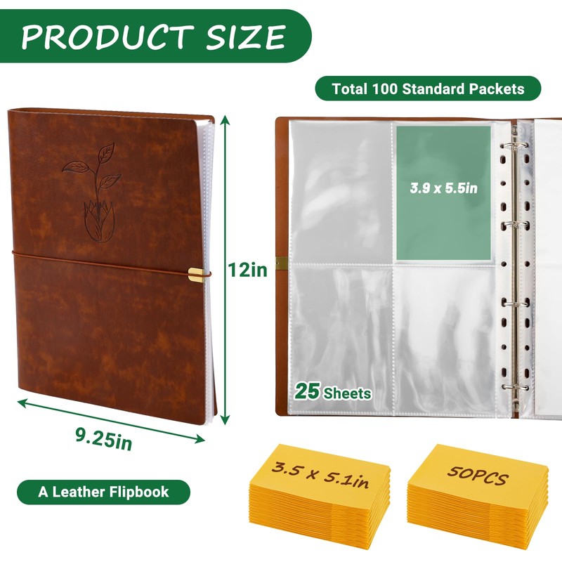 - 🌱Garden Seed Storage Organizer Binder ,50 Waterproof Seed Envelopes Brown Shell with 25 Sheet Protectors for Efficient Seed Packet Organization