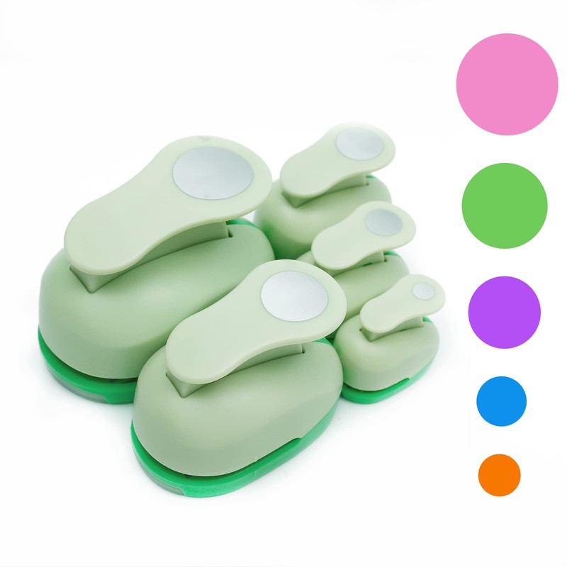 - 5 DIFFERENT SIZES CIRCLE PUNCH : Circle punch set comes wth 5 different size - Multi-size shape hole punch combined packaging provides more possibilities and creativity. Including 3/8 inch circle punch, 5/8 inch circle punch, 1 inch hole punch, 1.5 inch hole punch, 2 inch hole punch. Creating circle shape for your DIY crafts, scrapbooks, photo album and more