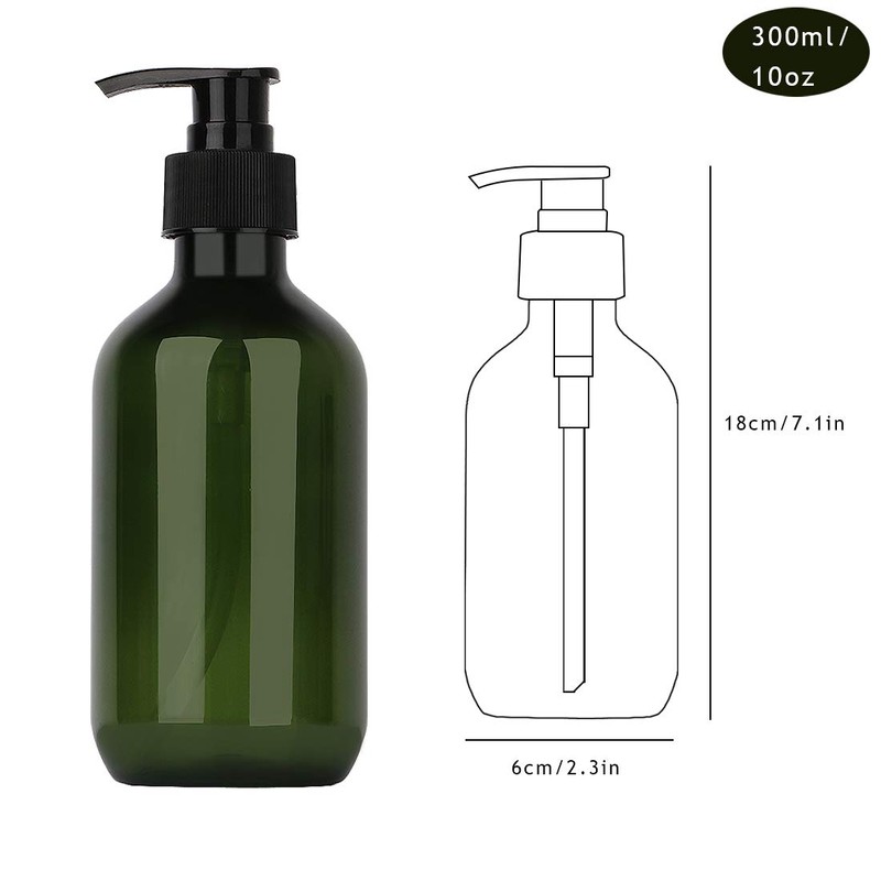 - Capacity of these shampoo bottles with pump is 10oz / 300ml, each package contains 2 pcs pump bottle