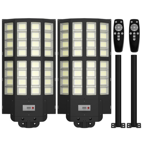 UCGG Solar Street Light Outdoor, 200000LM Parking Lot Lights Dusk to Dawn, IP67 Waterproof Motion Sensor Light with Remote Control Timer & Dimmable, Wide Lighting Angle Flood Lamp for Yard, 2 Pack