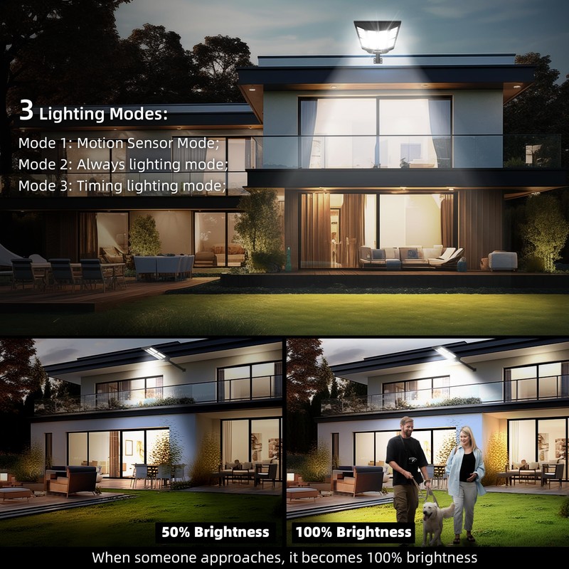 - [The Ultimate Outdoor Lighting Solution] Unlike traditional streetlights, our solar outdoor lights not only save on electricity costs but also simplify installation. They automatically activate at dusk, with the motion sensing mode providing added home security after dark.