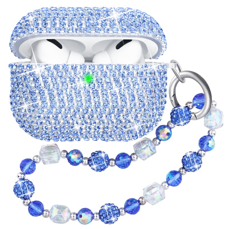 Ucharmbead Compatible with AirPods Pro 1st Generation Case Sparkly Rhinestone Girly Case for AirPods Pro with Shining Diamond Keychain Lanyard for Women Blue