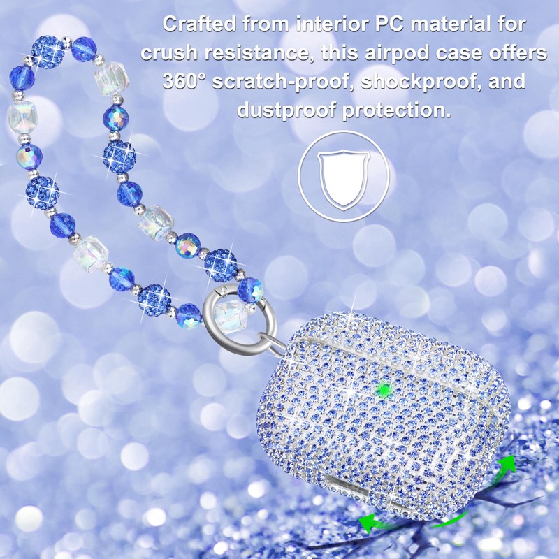 • Full Protection: Crafted from interior PC material for crush resistance, this airpods pro case offers 360° scratch-proof, shockproof, and dustproof protection. The high-density PC hard case material securely embeds each bling diamond on the cover, ensuring a neat and shiny appearance. It is an essential accessory to safeguard your airpod pro from daily wear and tear.