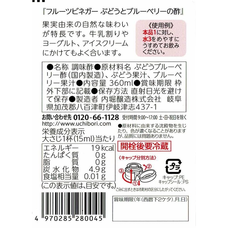 Uchibori Brewing Fruit Vinegar Grape and Blueberry Vinegar, 12.2 fl oz (360 ml)