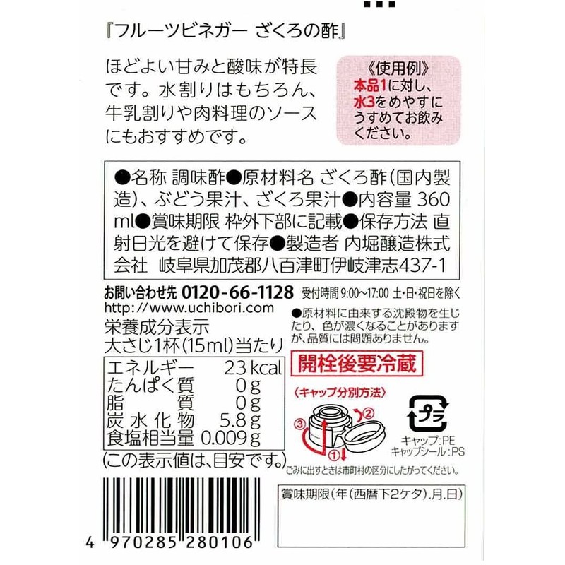 Uchibori Brewing Fruit Vinegar Pomegranate Vinegar, 12.2 fl oz (360 ml)