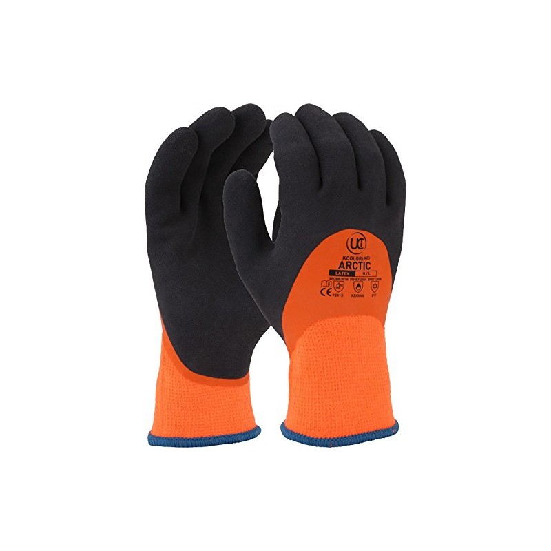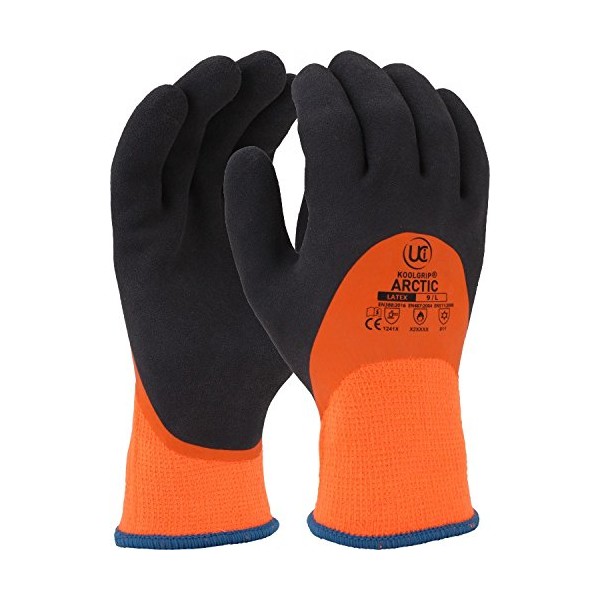 UCI KoolGrip ARCTIC Thermal Dual Latex Waterproof Grip Work Gloves ORANGE (7/Small)