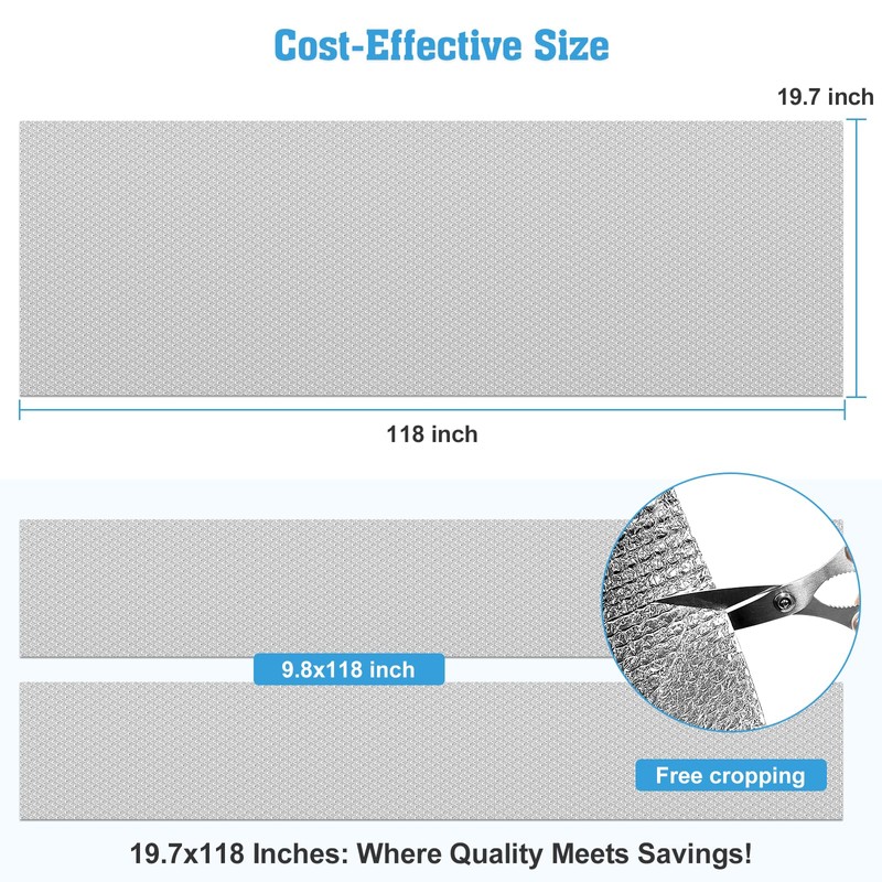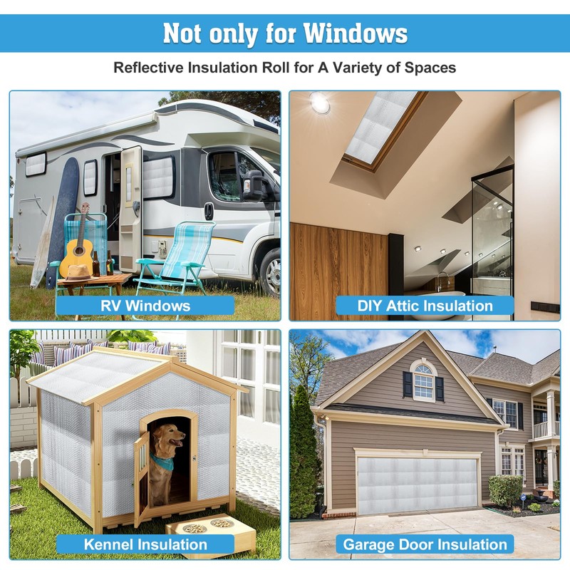 - 【Reflective Window Insulation Roll Size】The 19.7" Width: The Budget-Friendly Solution! UCINNOVATE 19.7"W x 78.7"L bubble insulation is made of premium reflective double aluminum foil materials and bubble type material. Easy to cut that can cater to all your need, block sunlight, reduce heat transfer and keep out the heat or cold. Premium material protect your windows or garage from affecting by moisture or humidity.