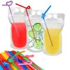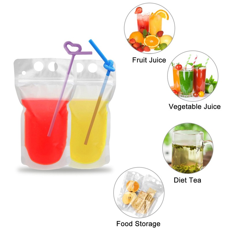 - [Food-grade Drink Bags] :100 pcs pouches drink bags with 100 pcs straws are food-grade which made of non-toxic, BPA free materials. Round corners for safety, The reclosable zip ensures easy opening and no leaking accidents