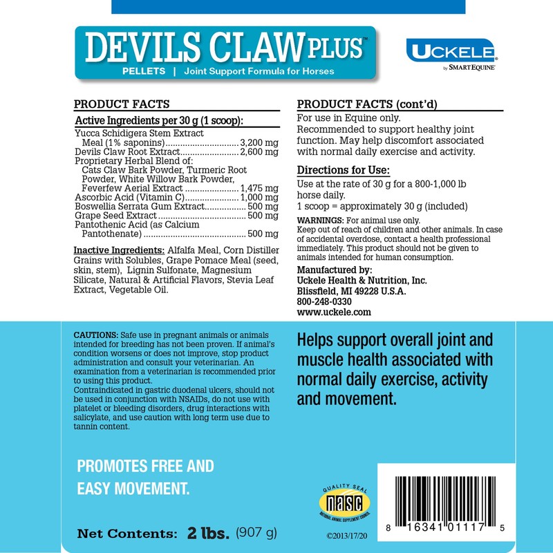 Uckele by SmartEquine | Devil's Claw Plus Granular | Horse Joint Supplement with Yucca for Horses | Supports Joint Strength, Comfort & Mobility | Antioxidant Support Supplement | 2 lb