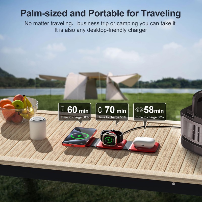 • 35% ENHANCED CHARGING SPEED: After all kinds of tests and collecting all kinds of feedbacks, the travel charger for mulple devices researched world-class chips and upgraded coils to increase the charging power by 35%. Rest assured that this will not move or disconnect during the charging process.