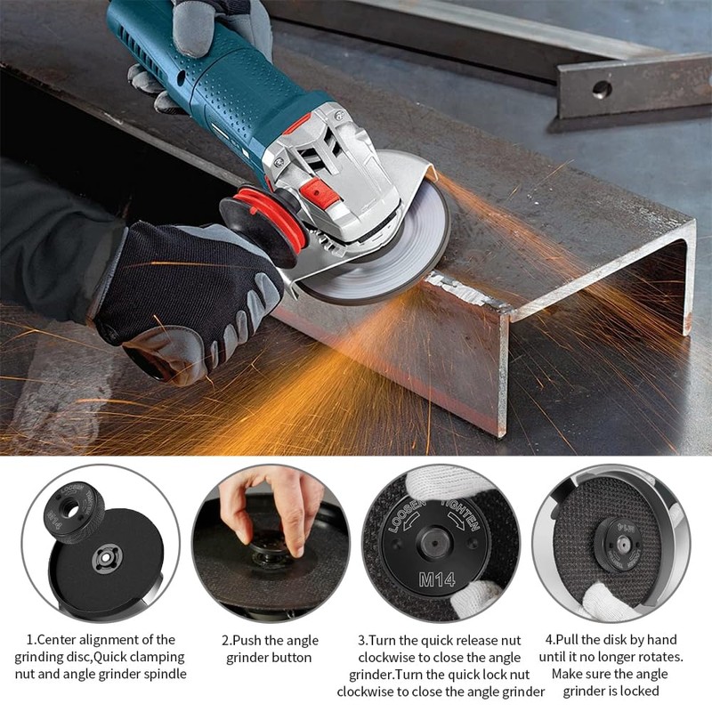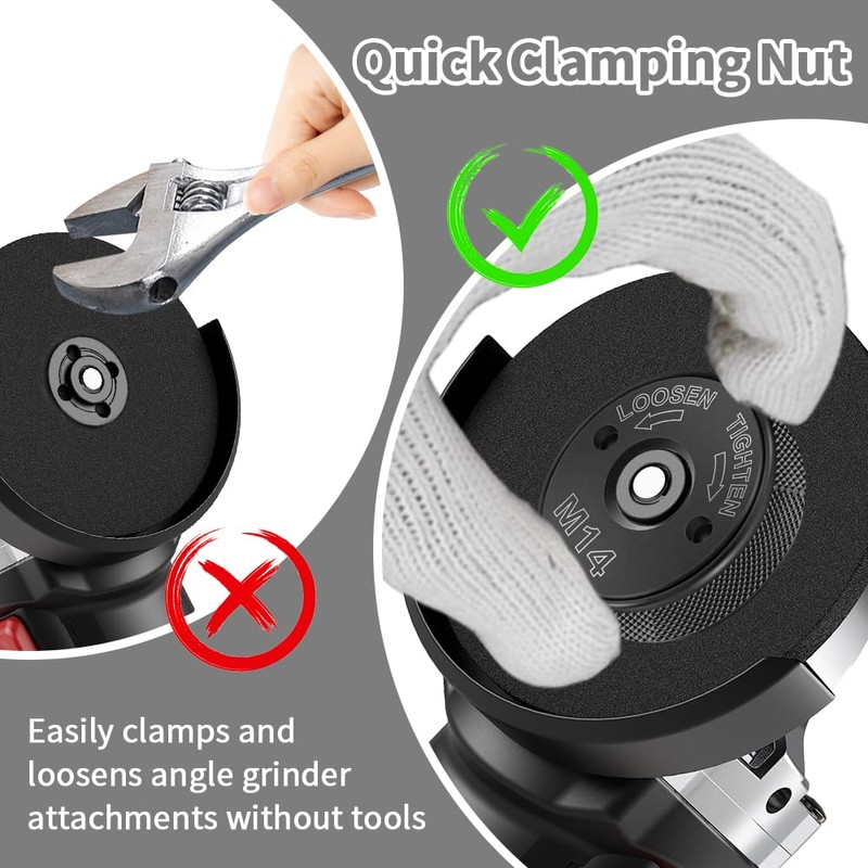 - Easy to use: this quick-release nut for angle grinder can be easily tightened by turning clockwise and quickly loosened by turning counterclockwise without the need for a wrench.