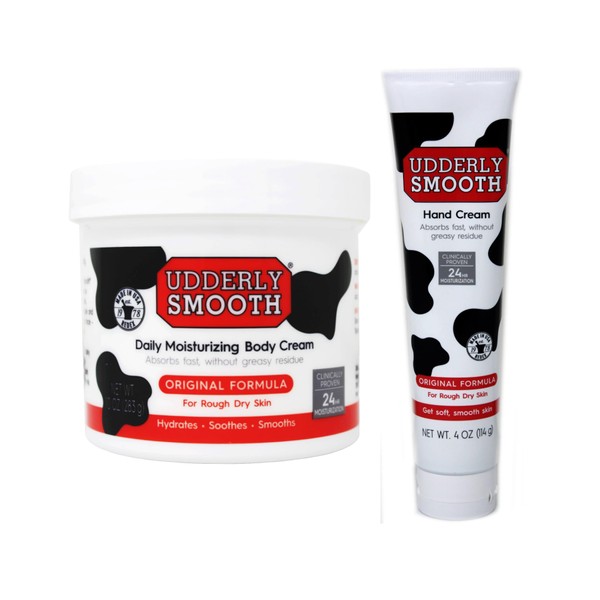 Original Udderly smooth udder cream is a greaseless, stainless water-based moisturizer with a light fresh fragrance. Originally developed for use on dairy cows. Used by many people for their dry and chapped skin. Use Udderly smooth as an everyday multipurpose moisturizing lotion. Contains rich moisturizing ingredients that perform to soften dry, chapped skin. 4 ounce with tube greaseless, stainless water-based moisturizer with a light fresh fragrance originally developed for use on dairy cows used by many people for their dry and chapped skin use as an everyday multipurpose moisturizing lotion contains rich moisturizing ingredients that perform to soften dry, chapped skin. Ingredients: deionized water, stearic acid, peg-2 stearate, propylene glycol, isopropyl myristate, dimethicone, lanolin oil, mineral oil, triethanolamine, allantoin, methylparaben, propylparaben, fragrance.