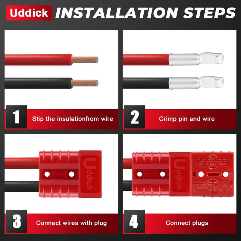 Uddick 20PCS 50A 6-10 Gauge Battery Cable Quick Connect/Disconnect Connector Plug Kit for Car Forklift Motor Winch Trailer (Red 6AWG)