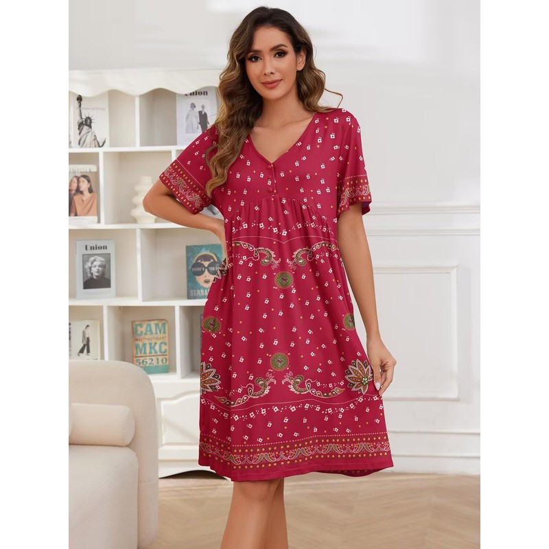 udforsk Moomoo Dresses for Womens Nightgown House Dress with Pockets Duster Housecoats Moomoo Dresses Loungers Plus Size Moo Moo Nightgown Wine Red L