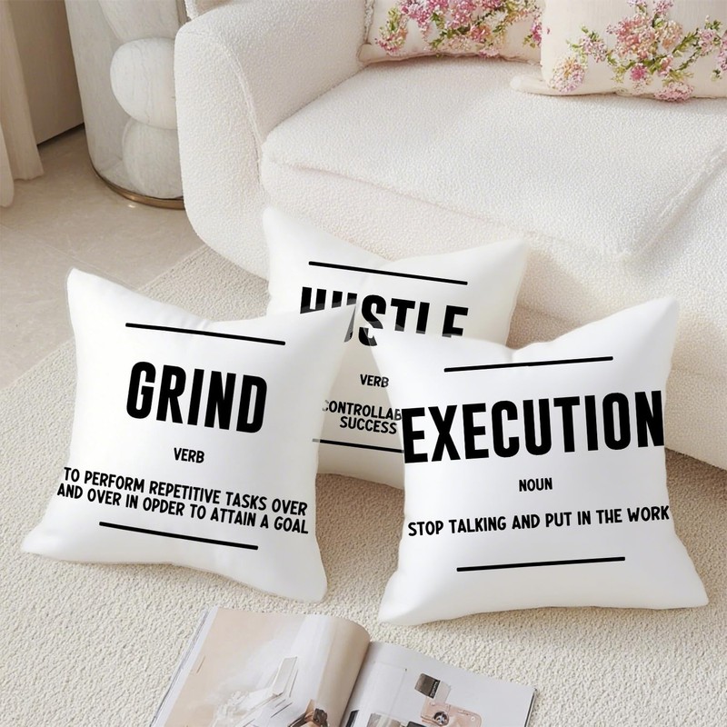 Udinaz Inspirational Quote Grind Hustle Execution Quote Success Entrepreneur 18 x 18 Inches White Throw Pillow Covers Set of 3,Bedroom Living Room Home Office Workplace Decor,Coworkers Gifts