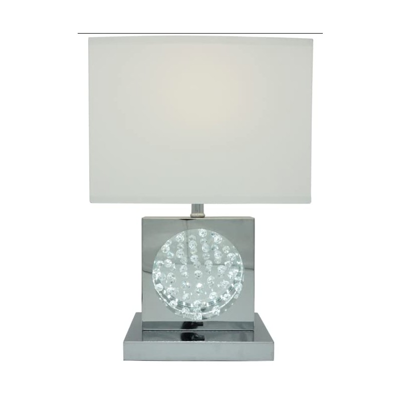 Udorich 22-Inch Chrome Square Crystal Centerpiece with Built-in LED Night Light, USB Port, and Power Outlet