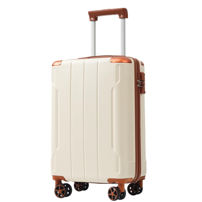 Udorich 3 Piece Expandable Hard Shell Luggage Set, Durable ABS Suitcases with Double Spinner Wheels, Travel Bag Set, White Brown