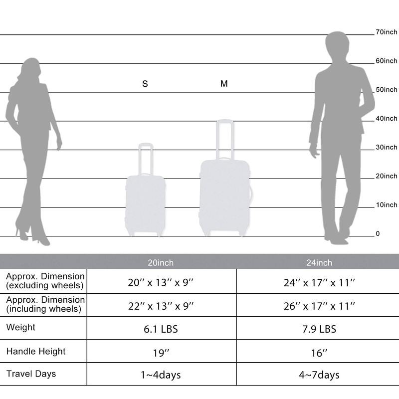 - Travel with confidence and style with a complete matching luggage set that offers a 20-inch carry-on and a 24-inch suitcase for all your adventure needs.