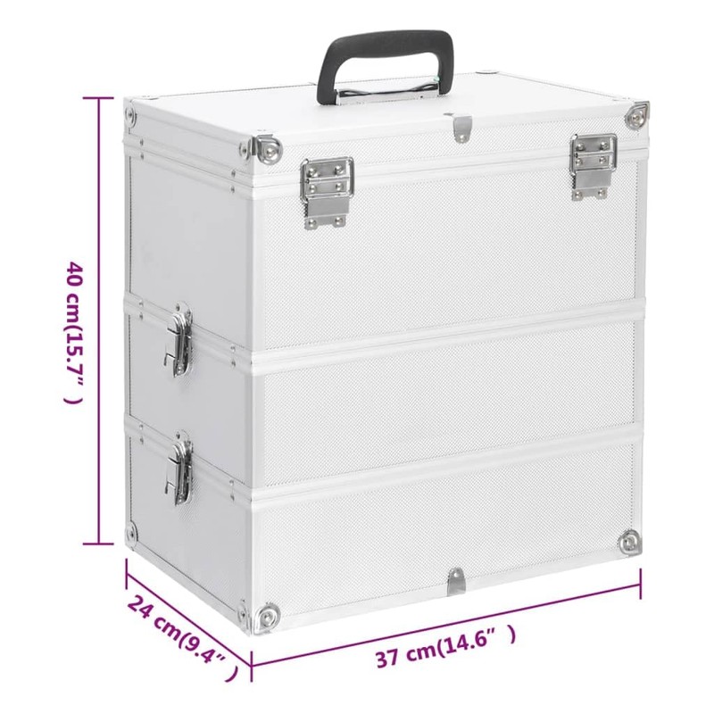 Key FeaturesDesigned with practicality in mind, this case boasts 3 detachable tiers that allow you to customize storage based on your needs. The sturdy aluminum construction combined with ABS and wood materials ensures while maintaining the stylish silver finish.