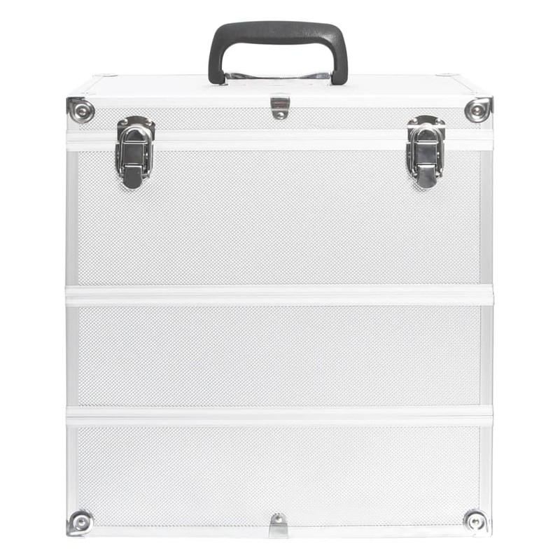 Udorich Make-up Case with 3 Detachable Tiers, Portable Carrying Handle, Silver Aluminum Construction, Dimensions 14.6''x9.4''x15.7''