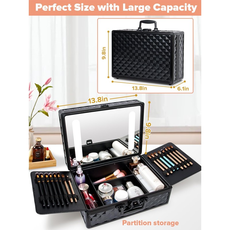 - Versatile and Portable: Equipped with a sturdy metal handle, this makeup case doubles as a portable dressing table, making it for travel or home use.