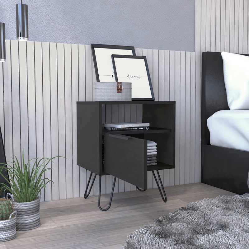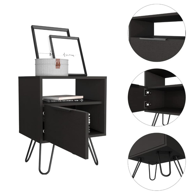 Udorich Sleek and Functional Black Nightstand with Hairpin Legs, Compact Design, Efficient Storage Solutions, Easy to Assemble