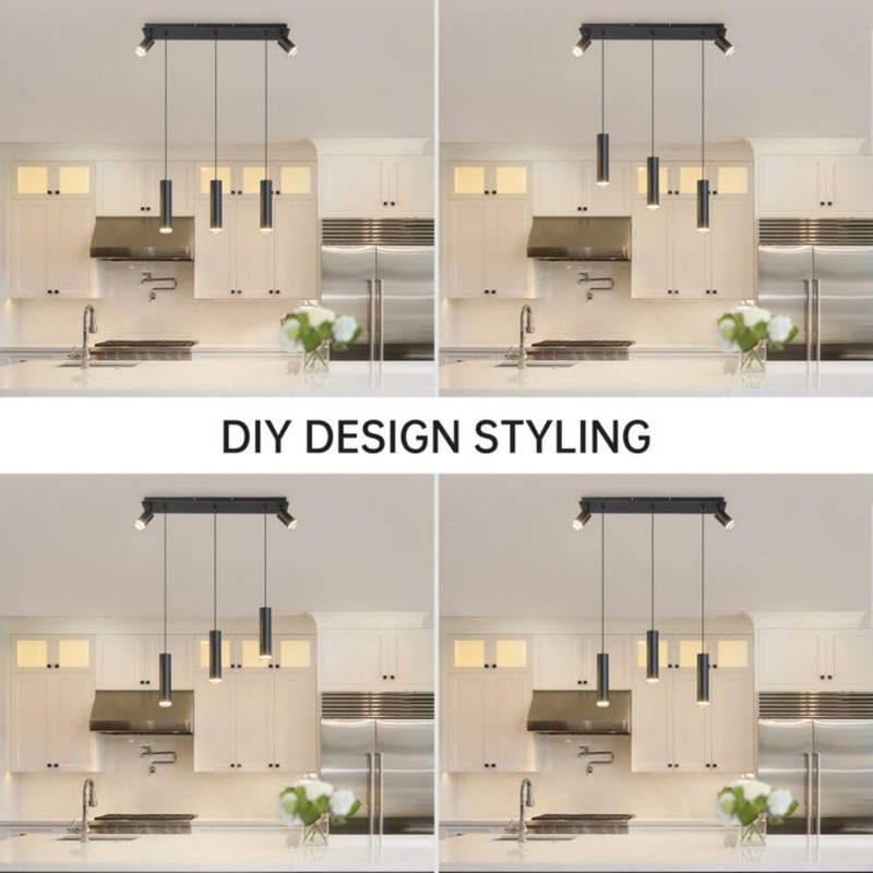 This adjustable 5-light kitchen island pendant provides versatility, with individual spotlights that can rotate 350 degrees and adjust 90 degrees up or down. Tailor the lighting to meet your specific needs and create the perfect atmosphere for any occasion, from casual meals to elegant gatherings.