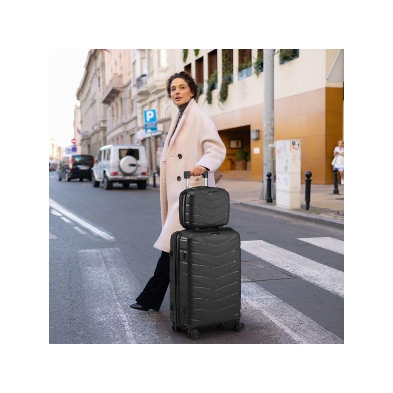 The classic black grained pattern adds a touch, ensuring that the luggage complements any travel outfit. Whether you’re dressing casually or looking sharp for business travel, this set suits all occasions.