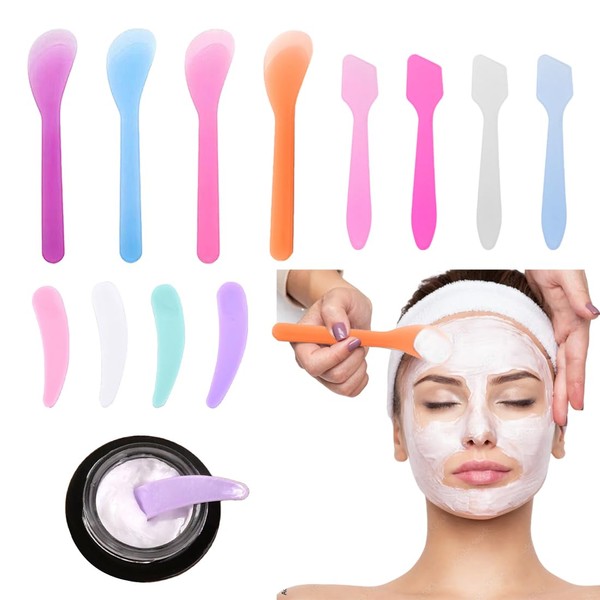 UEIOAVL Spatulas, 12 Pieces Plastic Cosmetic Spatulas, Cream Spatula Mini Spoon Cosmetic Mask Scraping Spoon Mask Washing (Random Colors)